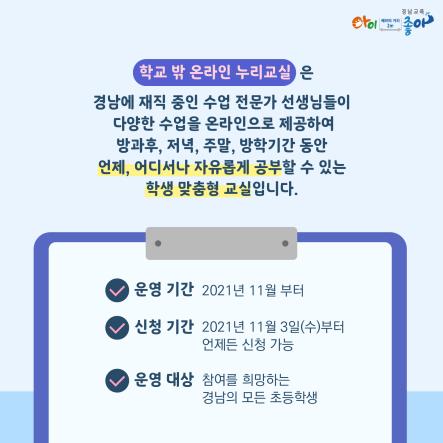 2021. 학교 밖 온라인 누리교실 신청 안내