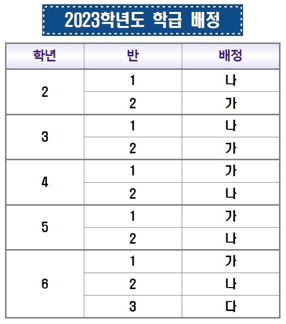 2023학년도 2~6학년 학반배정 결과 안내