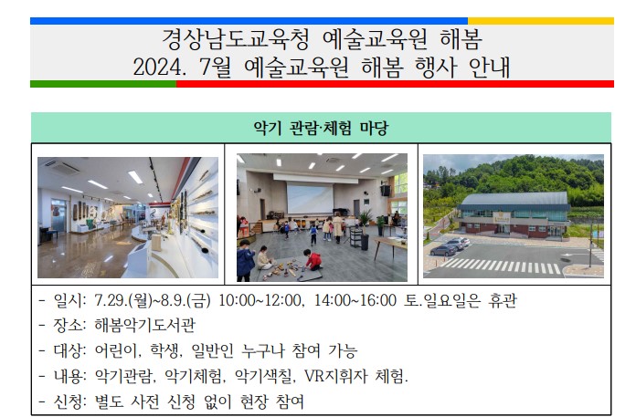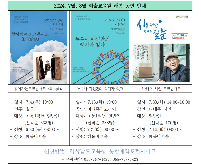 [경남교육청 예술교육원 해봄] 2024. 7월 예술교육원 해봄 행사 안내